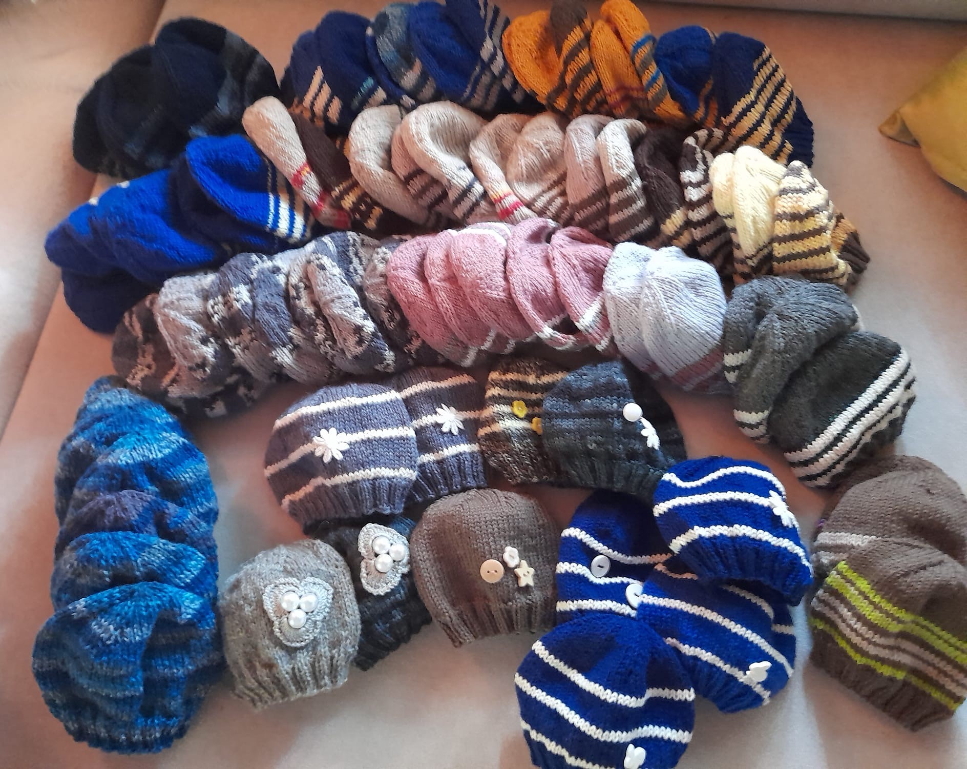 und Christine war auch wieder fleißig, nur sind die Sockerl etwas kleiner, für unsere Babystationen und Moni hat Mützennachschub gebracht!
